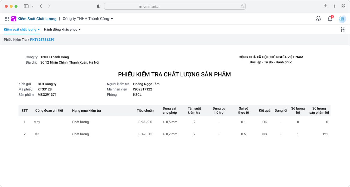 Tạo Phiếu kiểm tra và thực hiện kiểm tra chất lượng sản phẩm